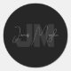 Pegatina Redonda Nombre y monograma modernos | Gris y negro