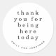 Simples Nombres Blancos Negros Gracias Boda. Estilo contemporáneo con Gracias por estar aquí más grande en las elegantes minúsculas y por sus nombres curvados debajo. Personaliza fácilmente el texto a tus propios detalles.