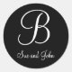 Pegatina Redonda Nombres iniciales B Boda blanco y negro
