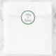 Los nombres son sencillos y elegantes, verde oscuro y blanco boda Pegatina redondo clásico. Muestra los nombres en blanco con un borde verde. Coordina con nuestra colección de bodas "Hojas tropicales verdes".