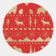 Pegatina Redonda Nórdico Sweater Gold Winter Animals Holiday Red