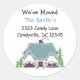 Una casa acogedora con diseños. Un techo azul y una puerta de entrada violeta. Una forma divertida de compartir tu nueva dirección. Personalizar con el nombre y la dirección de su familia según lo desee.
