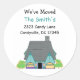 Una casa acogedora con un diseño único. Un techo gris y una puerta negra. Una forma divertida de compartir tu nueva dirección. Personalizar con el nombre y la dirección de su familia según lo desee.