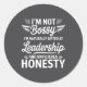 Pegatina Redonda Not Bossy Leadership And Honesty Funny Saying Mens
