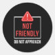 Pegatina Redonda Not Friendly Do Not Approach Funny Sarcastic Sayin
