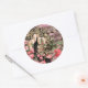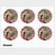 Pegatina Redonda Nota musical floral de pavo real rosa y dorado