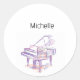 Notas musicales y Piano Keys Black and Gold Classic Round Pegatina Un diseño elegante para el pianista o el reproductor de teclado - con teclas de teclado con notas musicales de colores dorados sobre fondo negro. El color de fondo puede cambiarse a cualquier color para adaptarlo a sus necesidades y estilo, Personalizar el texto en la franja de colores dorados entre las teclas del piano y las notas de música