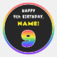 Pegatina Redonda Noveno cumpleaños: arcoiris colorido # 9, nombre p