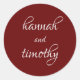 Pegatina Redonda Novia roja borgoñona simple y Boda groom