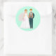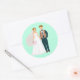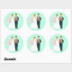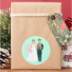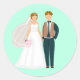 Gráficos de boda lindos con novia y novio y selladores de sobres de fondo azul teal.