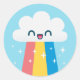 Pegatina Redonda Nube arcoiris muy emocionada con espárragos