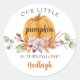 Pegatina Redonda Nuestra Pequeña Calabaza Primera Fiesta de Cumplea