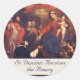 Design presenta una reproducción del famoso cuadro "Nuestra Señora del Rosario" del artista W. Damery. En la parte inferior, las palabras "Santo Domingo recibe el Rosario, 1214" se muestran en azul real con un fondo bronceado. Estos pegatinas son una gran manera de ayudar a difundir la verdad sobre los orígenes del Santo Rosario.