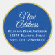 Pegatina Redonda Nueva dirección de personalizado azul, blanco y fa