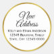 Este pegatina de cambio de dirección en blanco y en oro falso se puede personalizar con el texto deseado (se muestra: Nueva dirección). El texto es escritura negra. El borde dorado no es Relieve metalizado.