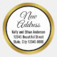 Este pegatina de cambio de dirección en blanco negro y oro puede ser personalizado. Un elegante guión negro está en la parte superior. Puede editar el guión para mostrar el texto de su personalizado si lo desea (se muestra: Nueva dirección). Hay líneas adicionales de texto para mostrar su nombre y nueva dirección. La falsa frontera de oro no está hecha de Relieve metalizado.