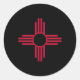 Pegatina Redonda Nuevo México Zia Sun Símbolo Rojo Zia Sun solo