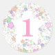 Pegatina Redonda Número 1 Un primer cumpleaños Estrellas Pastel