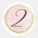 Pegatina Redonda Número 2 Dos Monograma Rosa Beige Acuarela Dorado