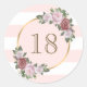 Pegatina Redonda Número de Personalizado floral Gold Pink Rubor