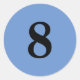 La planificación del número ocho proporciona un sencillo Pegatina redondo clásico azul con el guión negro "8". Utilícelo para la planificación, los suministros de oficina o escolares, o para recordar a la gente (junto con otros pegatinas de número) la fecha. Ayuda a tu hijo a aprender números, o ayuda a tus seres queridos con problemas de memoria a recordar la fecha. Puedes pegar a estos pegatinas en planificadores, laptops, teléfonos, ropa o cualquier otra cosa.