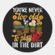Pegatina Redonda Nunca eres demasiado viejo para jugar en el jardín