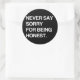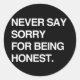 PEGATINA REDONDA NUNCA LO SIENTO POR SER HONESTO