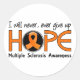 Para ver la completa Colección Boutique Awareness Gift de diseños exclusivos de Esclerosis Múltiple TODOS MOSTRADOS EN UNA PÁGINA, por favor visite nuestra Sección de Esclerosis Múltiple en Nunca debemos renunciar a la Esperanza especialmente cuando se trata de una Cura para Esclerosis Múltiple. Comparte este sentimiento inspirador mientras ilumina un camino naranja para la conciencia de la Esclerosis Múltiple con camisetas, ropa, botones y mercadería de I Will Never, Ever Give Up Hope, con fuentes de texto contrastantes y una cinta de naranja para la concienciación sobre la Esclerosis Múltiple cubierta con un toque de "vidrio" con un borde vintage como la ‘O’ en HOPE. Como sobrevivientes del cáncer, cónyuges supervivientes y entusiastas defensores de la conciencia, estamos encantados de contribuir a numerosas organizaciones de caridad médicas, animales y de Darfur y los invitamos a que piensen primero en nosotros para todas sus necesidades de concienciación y apoyo en relación con la Esclerosis Múltiple.