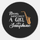 Pegatina Redonda Nunca Subestimes A Con Un Saxofón
