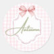 Pegatina Redonda Nursery Bow&Gingham personalizada para bebé de oto