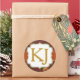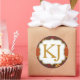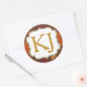 Hojas de roble de color de otoño con guarnecido de comprobación de gingham y pegatina monograma de ducha de efecto purpurina dorado.