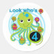 Pegatina Redonda Octopus 4º cumpleaños camisetas y regalos de T