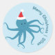 Pegatina Redonda Octopus azul Santa Merry Christmas