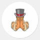 Pegatina Redonda Octopus como Caballero con sombrero superior