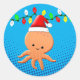 Pegatina Redonda Octopus Personalizado lindo Navidades Santa Hat