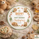Pegatina Redonda Oh Boy Watercolor Woodland Bear Baby Shower