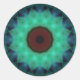 Ojo malvado con alumno rojo oscuro. Iris verde azulado claro y oscuro. Mandala de 12 puntos.