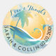 Pegatina Redonda Olas/palmeras de PixDezines, puesta de sol/retro