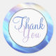 Olas abstractas en tonos turquesa, azul turquesa, lavanda y cuarzo rosa. "Gracias" o tu elección de texto se muestra en un juego de palabras en blanco redondo con escritura azul y lavanda. Simplemente agregue su inicial a la plantilla de campo de texto proporcionada o haga clic en "Personalizar" para ajustar el tamaño del tipo de letra, el color, la ubicación o realizar los cambios que desee. Obra de arte y diseño de Karlajkitty