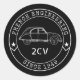 Emblem Motiv mit Linienzeichnung der 2cv Ente und dem Text "French Engineering - Since 1949".