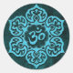 Pegatina Redonda Om Floral De Piedra Azul