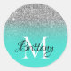 Pegatina Redonda Ombre Monogramado, Purpurina turquesa plateado