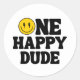 Pegatina Redonda One Happy Dude Boy's Retro 1st Birthday