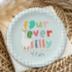 Este lindo y divertido diseño pegatina de 1er cumpleaños para niños presenta a una gallina de los huevos con un gorra fiesta, la palabra es "gracias", y puede ser personalizado con el nombre de su hijo en tipografía adorable y colorida. ¡El diseño perfecto para tu primer cumpleaños!