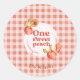 Pegatina Redonda One Sweet Peach First Birthday Rustic Gingham