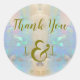 Esta elegante boda gracias pegatina está decorada con una imagen de los hermosos multicolores azul aguamarina, rosa, melocotón y verde espuma marina en un precioso opal.
