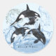 Pegatina Redonda Orcas de acuarela blanca y negra increíbles
