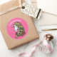 El guerrero Unicornio Fiesta Orgullo Pegatina de Ronda Clásica Rosa Una fiesta temática de Unicornio es el tema perfecto de fiesta de orgullo de cumpleaños para cualquier niña que crea en la magia y el espíritu de aventura