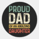 Pegatina Redonda Orgulloso papá asombra a hija graciosa de padres e