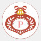Pegatina Redonda Ornamento navideño rojo vintage | Monograma
